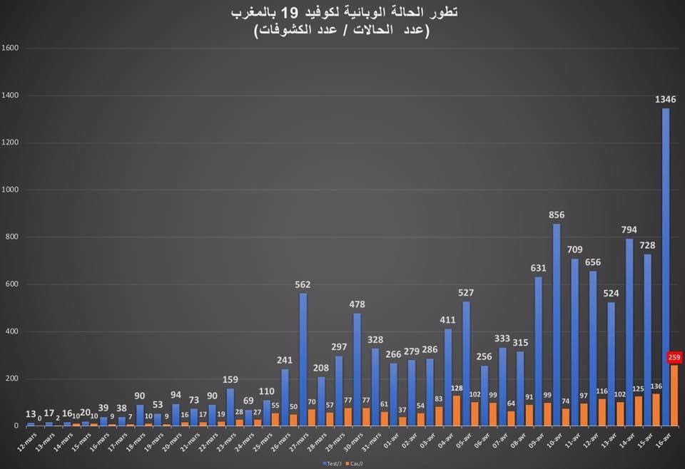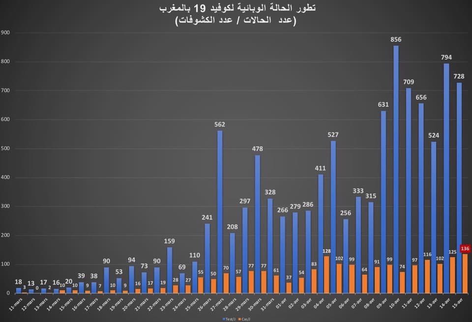 تحديث مبيان الحالة الوبائية بالمغرب ليوم 12 أبريل 2020