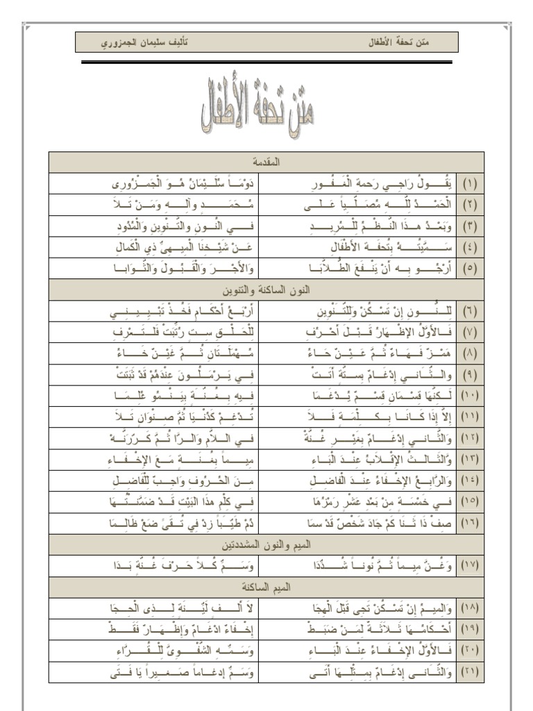 Tajweed Poem Tuhfatul Atfal