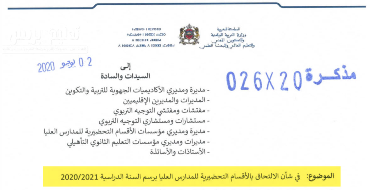 الالتحاق بالأقسام التحضيرية للمدارس العليا Cpge برسم السنة الدراسية 2021 2020
