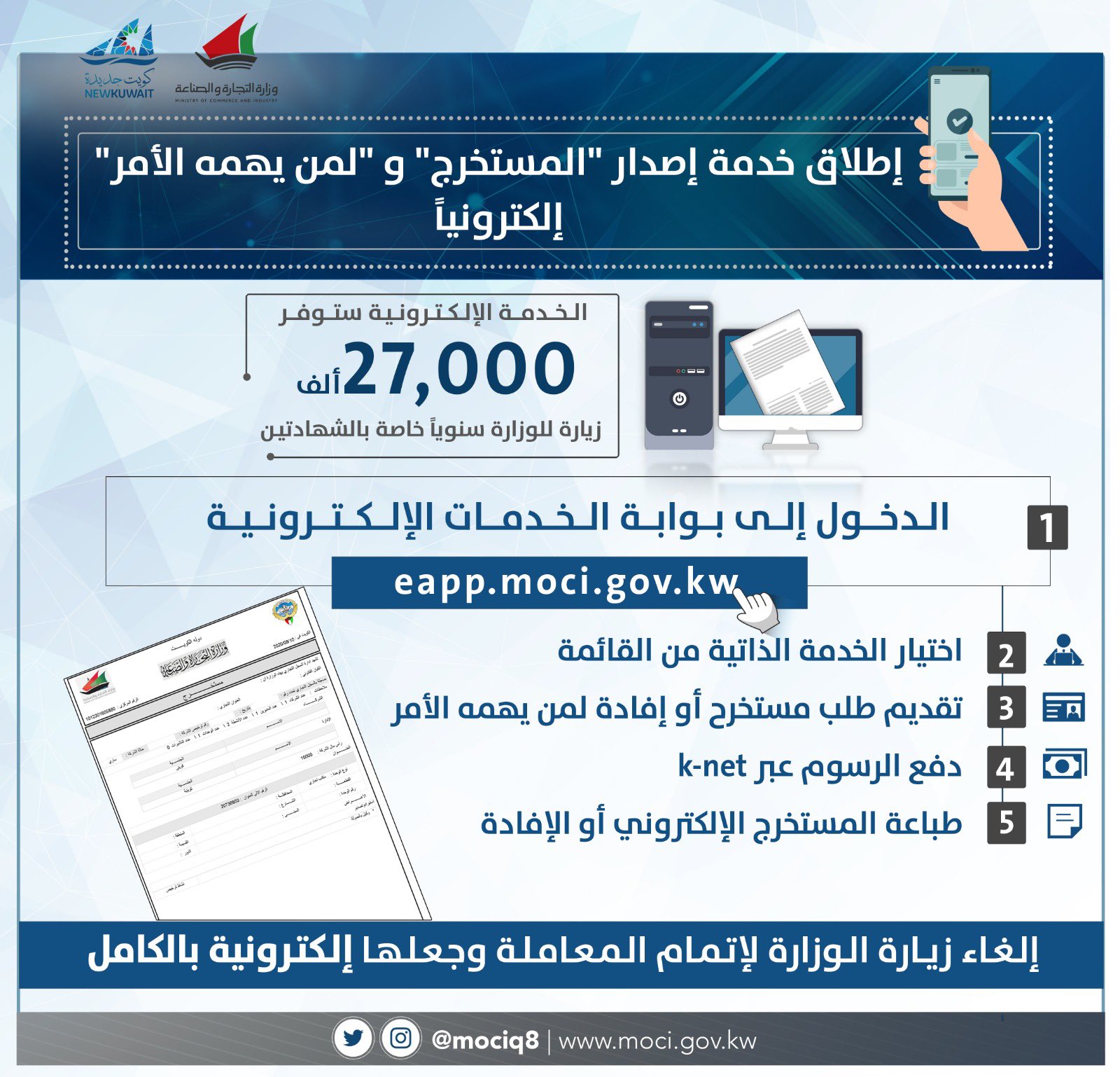 صحيفة بوبيان نيوز التجارة تطلق خدمة مستخرج السجل التجاري و افادة لمن يهمه الامر إلكتروني ا