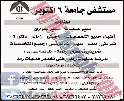 وظائف مستشفى جامعة 6 اكتوبر