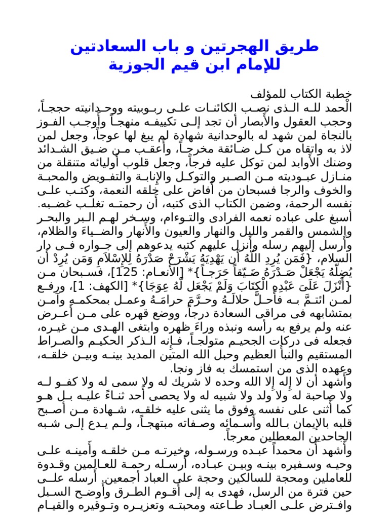 طريق الهجرتين و باب السعادتين لابن القيم