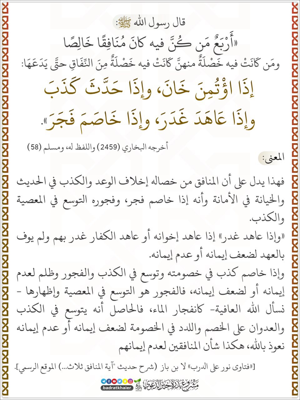جريدة المغرب النبوي ات أربع من كن فيه كان منافقا